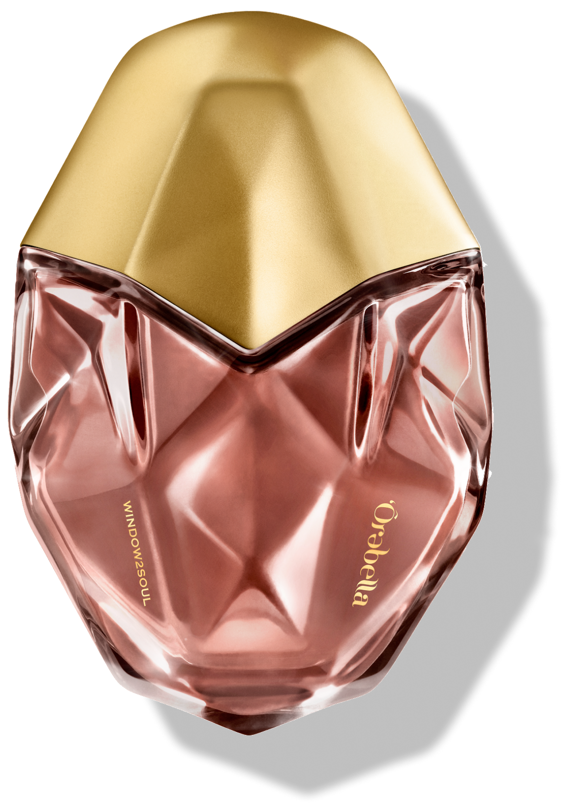 Multi-faceted gold base to display all ‘Ôrebella 100mL parfums.